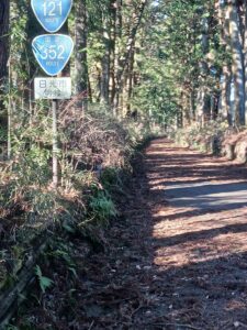 今市市の板橋交差点から1キロほどは杉並木保護のため車両通行止めとなり、杉の落葉がアスファルトを覆い、芭蕉の見た景色に近い感じになりました。それでも、そこを過ぎると歩道はなくなり、危険な道に早変わりです。